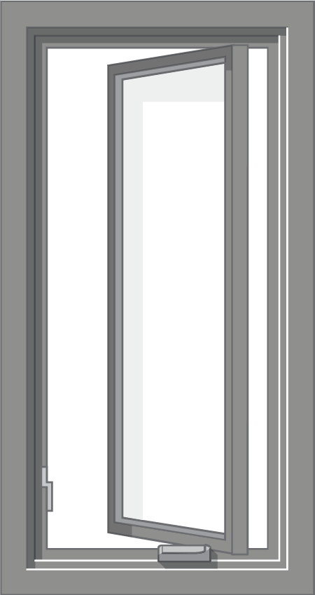 A casement window is hinged on either side, so it opens outward in a swinging motion to provide maximum ventilation. It is one of the most popular windows today!